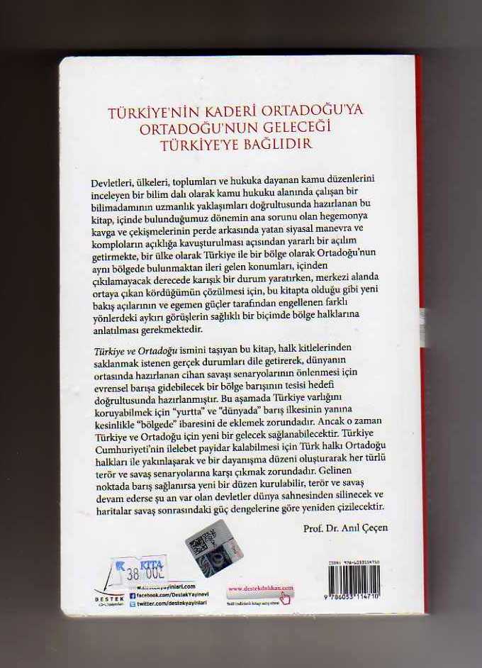 Prof. Dr. ANIL ÇEÇEN'in 29. Kitabı Gün Yüzü Gördü. "TÜRKİYE VE ORTADOĞU" Adlı Kitap Destek Medya Grubu "DESTEK YAYINLARI" Tarafından 2018 Yılı'nın Ekim Ayında Yayımlandı. Kitabın Özü ve Öznesi: TÜRKİYE'NİN KADERİ ORTADOĞU'YA, ORTADOĞU'NUN GELECEĞİ TÜRKİYE'YE BAĞLIDIR. ANIL ÇEÇEN (Siyaset Bilimci, Avukat, Kamu Hukukçusu, Emekli Öğretim Görevlisi, Araştırmacı-Yazar)